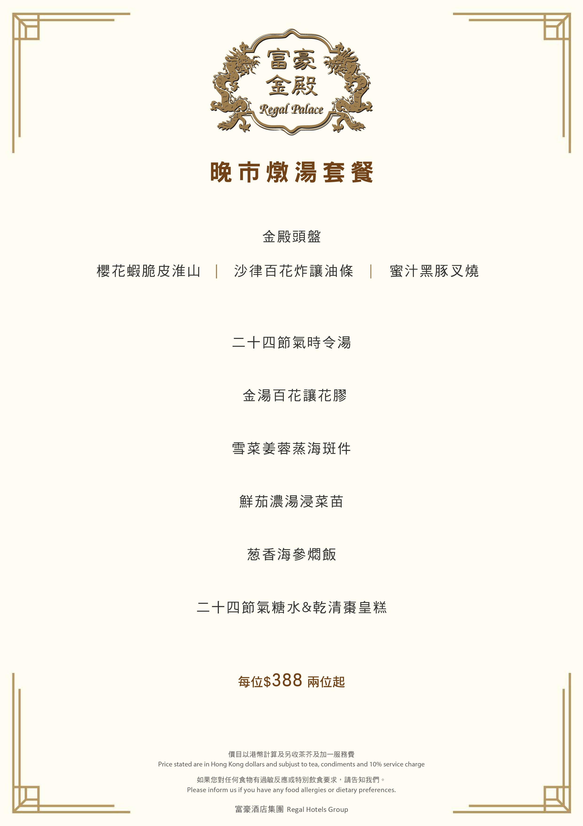 富豪金殿為您精心炮製高品質並富有創意的美味中菜。走進餐廳內雅致的獨立套房,享受舒適寧靜的用餐體驗,在華麗的水晶吊燈下品嘗一系列屢獲殊榮的招牌菜餚以及經典港式點心。